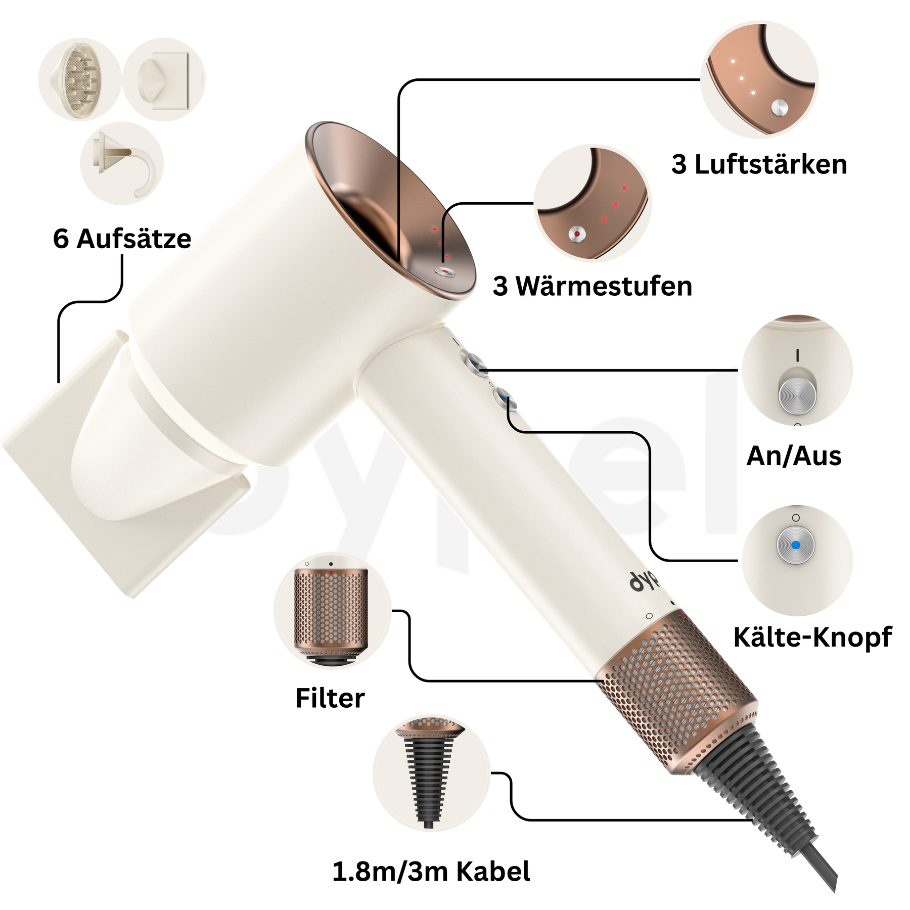 Der Dypel Dryer macht dein Styling zu einem entspannten Moment ganz für dich. Dank seines leisen Motors kannst du dein Haar in Ruhe föhnen perfekt für stressige Morgen oder späte Abende, ohne unnötigen Lärm. Die hochwertige Verarbeitung und langlebigen Materialien geben dir das gute Gefühl, dich auf ihn verlassen zu können.